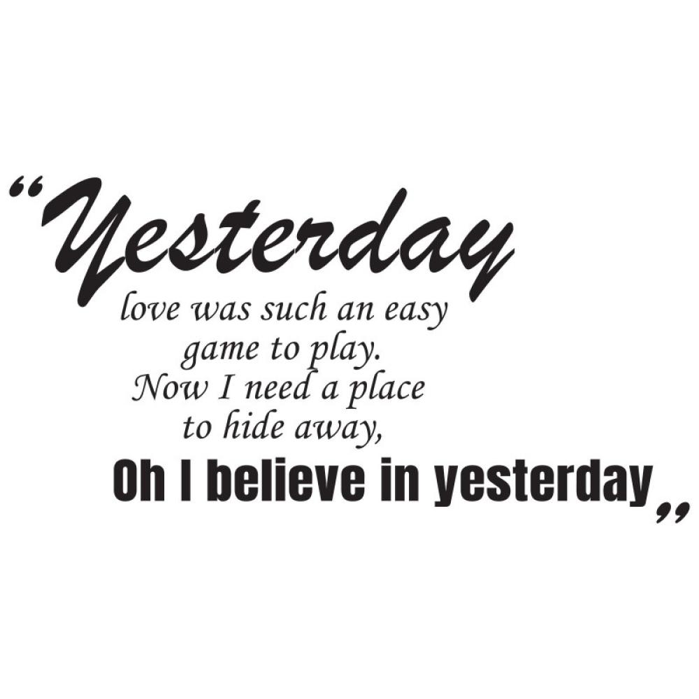 "Yesterday love was such an easy game to play. Now I need a place to hide away, oh I believe in yesterday"
