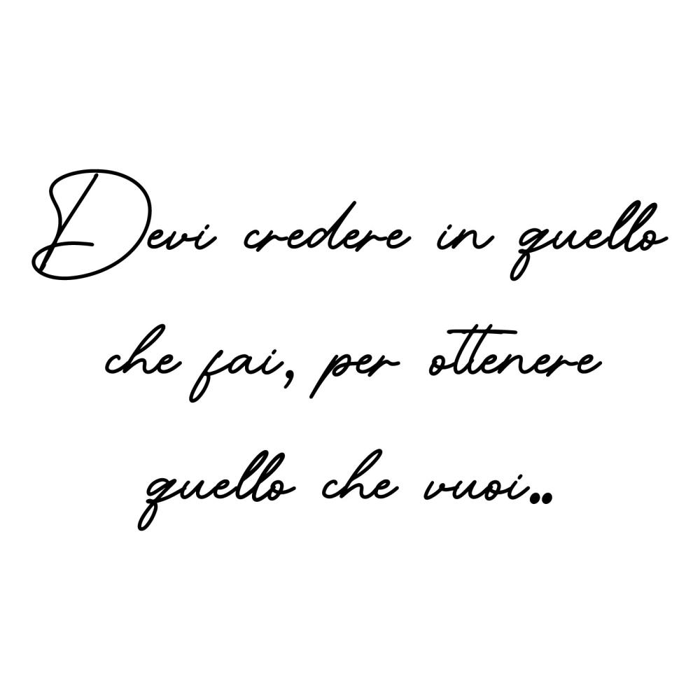PRODOTTI DI ALTA QUALITÀ Scegli l’adesivo “Devi credere in quello che fai” Di-arte: facilissimo da applicare e così sottile da poter essere rimosso in modo semplice, senza lasciar alcun segno sulle superfici.I nostri adesivi, 100% Made in Italy, presentano un’elevata qualità, in quanto prodotti con metodi che prevedono un’alta percentuale di lavoro a mano e materiali ricercati e sempre all’avanguardia.Gli adesivi Di-arte sono ottimi per ogni parete della tua casa o del tuo ufficio: semplici, ma allo stesso tempo di grande effetto per dare un tocco unico alle tue stanze. SCEGLI LA SOLUZIONE PIÙ ADATTA A TE Applica il tuo adesivo dove preferisci, servendoti di una semplice card o carta di credito, utile per farlo attaccare meglio alla superficie, dopo aver scelto dimensioni e colore che più fanno per te. Le nostre dimensioni sono sempre associate al foglio di consegna e indicate come larghezza x altezza. Vorresti comprare l’adesivo murale “Devi credere in quello che fai” ma necessiti di una dimensione o di un colore diverso? Nessun problema, contattaci e cercheremo la soluzione più adatta alle tue esigenze. INDICAZIONI PER L’APPLICAZIONE Grazie all’application tape, pellicola appiccicosa trasparente che viene posta al di sopra dell’adesivo, è possibile, una volta rimossa la carta di supporto, trasferire integralmente, in un’unica soluzione, lo sticker direttamente sul muro.Servendosi di una spatola o anche di una qualsiasi card o carta di credito, dopo aver compiuto un movimento dal centro verso l’esterno, necessario per farlo aderire meglio, è sufficiente rimuovere con cautela la pellicola, sollevandone un bordo e tirando verso l’esterno, e l’adesivo sarà pronto. Hai ancora dubbi sull’applicazione? Segui le istruzioni che ti verranno consegnate con il nostro adesivo e cambia look alla tua casa! I nostri adesivi si adattano perfettamente alle superfici lisce: assicurati, dunque, prima di procedere all’applicazione che essa sia pulita e priva di tracce di polvere.