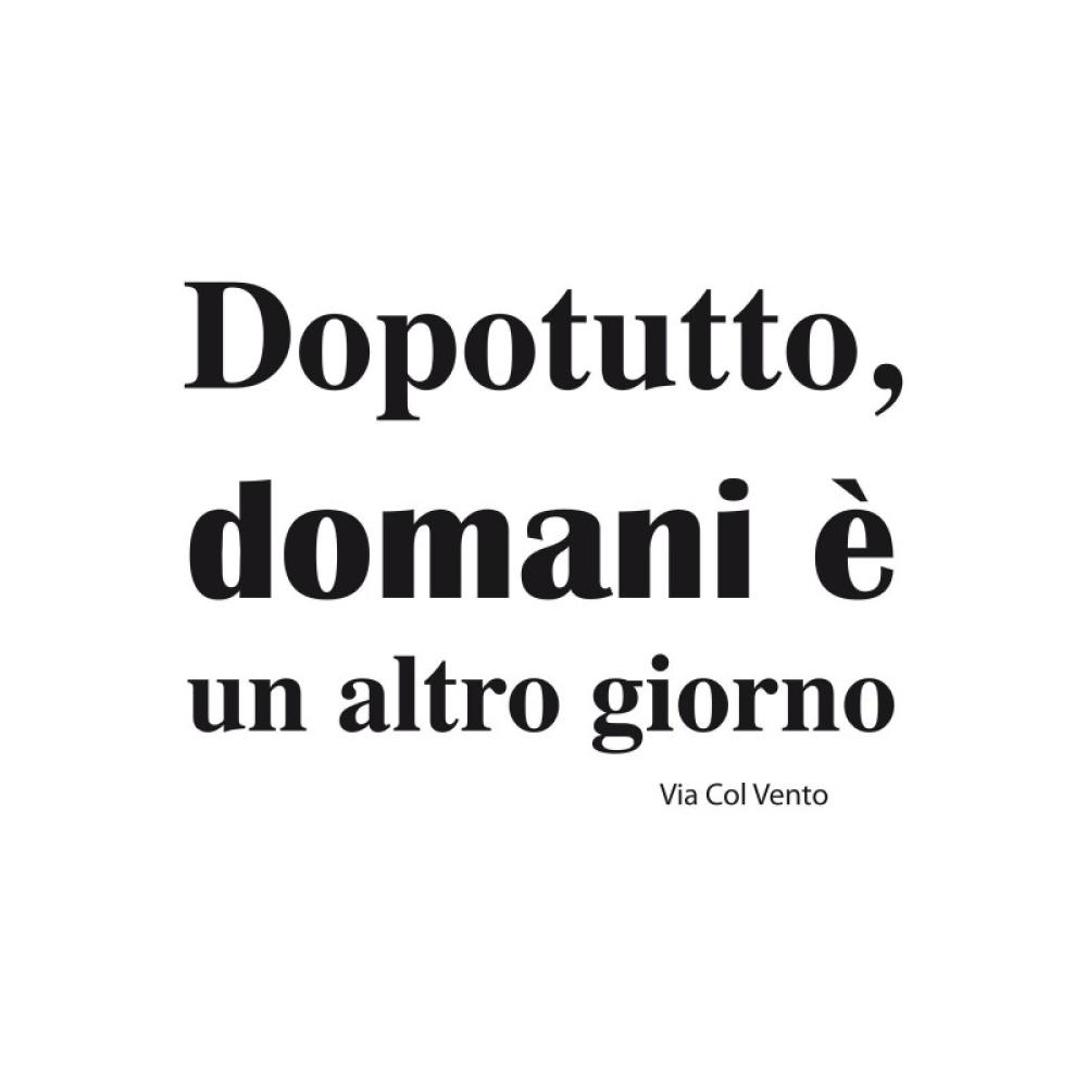 PRODOTTI DI ALTA QUALITÀ Scegli l’adesivo “Dopotutto domani...” Di-arte: facilissimo da applicare e così sottile da poter essere rimosso in modo semplice, senza lasciar alcun segno sulle superfici.I nostri adesivi, 100% Made in Italy, presentano un’elevata qualità, in quanto prodotti con metodi che prevedono un’alta percentuale di lavoro a mano e materiali ricercati e sempre all’avanguardia.Gli adesivi Di-arte sono ottimi per ogni parete della tua casa o del tuo ufficio: semplici, ma allo stesso tempo di grande effetto per dare un tocco unico alle tue stanze.