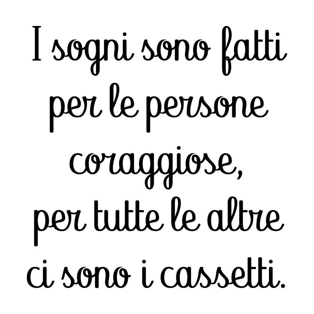 PRODOTTI DI ALTA QUALITÀ Scegli l’adesivo “I sogni sono fatti per le persone coraggiose” Di-arte: facilissimo da applicare e così sottile da poter essere rimosso in modo semplice, senza lasciar alcun segno sulle superfici.I nostri adesivi, 100% Made in Italy, presentano un’elevata qualità, in quanto prodotti con metodi che prevedono un’alta percentuale di lavoro a mano e materiali ricercati e sempre all’avanguardia.Gli adesivi Di-arte sono ottimi per ogni parete della tua casa o del tuo ufficio: semplici, ma allo stesso tempo di grande effetto per dare un tocco unico alle tue stanze. SCEGLI LA SOLUZIONE PIÙ ADATTA A TE Applica il tuo adesivo dove preferisci, servendoti di una semplice card o carta di credito, utile per farlo attaccare meglio alla superficie, dopo aver scelto dimensioni e colore che più fanno per te. Le nostre dimensioni sono sempre associate al foglio di consegna e indicate come larghezza x altezza. Vorresti comprare l’adesivo murale “I sogni sono fatti per le persone coraggiose” ma necessiti di una dimensione o di un colore diverso? Nessun problema, contattaci e cercheremo la soluzione più adatta alle tue esigenze. INDICAZIONI PER L’APPLICAZIONE Grazie all’application tape, pellicola appiccicosa trasparente che viene posta al di sopra dell’adesivo, è possibile, una volta rimossa la carta di supporto, trasferire integralmente, in un’unica soluzione, lo sticker direttamente sul muro.Servendosi di una spatola o anche di una qualsiasi card o carta di credito, dopo aver compiuto un movimento dal centro verso l’esterno, necessario per farlo aderire meglio, è sufficiente rimuovere con cautela la pellicola, sollevandone un bordo e tirando verso l’esterno, e l’adesivo sarà pronto. Hai ancora dubbi sull’applicazione? Segui le istruzioni che ti verranno consegnate con il nostro adesivo e cambia look alla tua casa! I nostri adesivi si adattano perfettamente alle superfici lisce: assicurati, dunque, prima di procedere all’applicazione che essa sia pulita e priva di tracce di polvere.