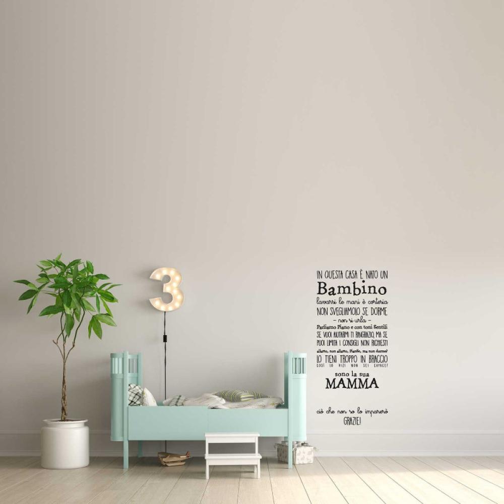 PRODOTTI DI ALTA QUALITÀ Scegli l’adesivo “In questa casa è nato un bambino” Di-arte: facilissimo da applicare e così sottile da poter essere rimosso in modo semplice, senza lasciar alcun segno sulle superfici.I nostri adesivi, 100% Made in Italy, presentano un’elevata qualità, in quanto prodotti con metodi che prevedono un’alta percentuale di lavoro a mano e materiali ricercati e sempre all’avanguardia.Gli adesivi Di-arte sono ottimi per ogni parete della tua casa o del tuo ufficio: semplici, ma allo stesso tempo di grande effetto per dare un tocco unico alle tue stanze.
