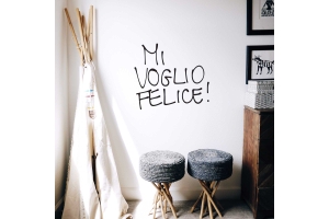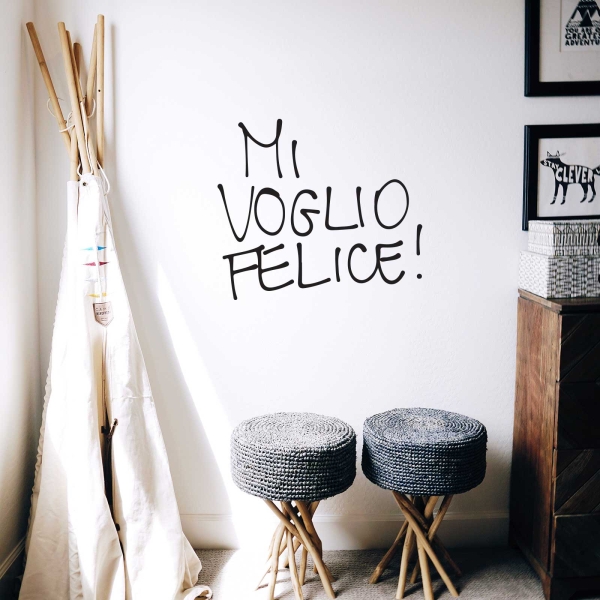 PRODOTTI DI ALTA QUALITÀ Scegli l’adesivo “Mi voglio felice” Di-arte: facilissimo da applicare e così sottile da poter essere rimosso in modo semplice, senza lasciar alcun segno sulle superfici.I nostri adesivi, 100% Made in Italy, presentano un’elevata qualità, in quanto prodotti con metodi che prevedono un’alta percentuale di lavoro a mano e materiali ricercati e sempre all’avanguardia.Gli adesivi Di-arte sono ottimi per ogni parete della tua casa o del tuo ufficio: semplici, ma allo stesso tempo di grande effetto per dare un tocco unico alle tue stanze. SCEGLI LA SOLUZIONE PIÙ ADATTA A TE Applica il tuo adesivo dove preferisci, servendoti di una semplice card o carta di credito, utile per farlo attaccare meglio alla superficie, dopo aver scelto dimensioni e colore che più fanno per te. Le nostre dimensioni sono sempre associate al foglio di consegna e indicate come larghezza x altezza. Vorresti comprare l’adesivo murale “Mi voglio felice” ma necessiti di una dimensione o di un colore diverso? Nessun problema, contattaci e cercheremo la soluzione più adatta alle tue esigenze. INDICAZIONI PER L’APPLICAZIONE Grazie all’application tape, pellicola appiccicosa trasparente che viene posta al di sopra dell’adesivo, è possibile, una volta rimossa la carta di supporto, trasferire integralmente, in un’unica soluzione, lo sticker direttamente sul muro.Servendosi di una spatola o anche di una qualsiasi card o carta di credito, dopo aver compiuto un movimento dal centro verso l’esterno, necessario per farlo aderire meglio, è sufficiente rimuovere con cautela la pellicola, sollevandone un bordo e tirando verso l’esterno, e l’adesivo sarà pronto. Hai ancora dubbi sull’applicazione? Segui le istruzioni che ti verranno consegnate con il nostro adesivo e cambia look alla tua casa! I nostri adesivi si adattano perfettamente alle superfici lisce: assicurati, dunque, prima di procedere all’applicazione che essa sia pulita e priva di tracce di polvere.