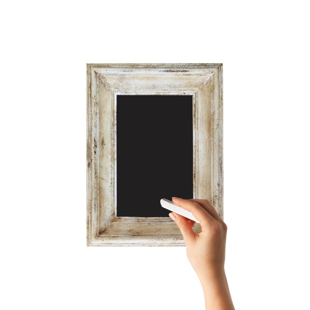 Pannello in di-bond con adesivo lavagna e cornice stampata, spessore 3 mm.